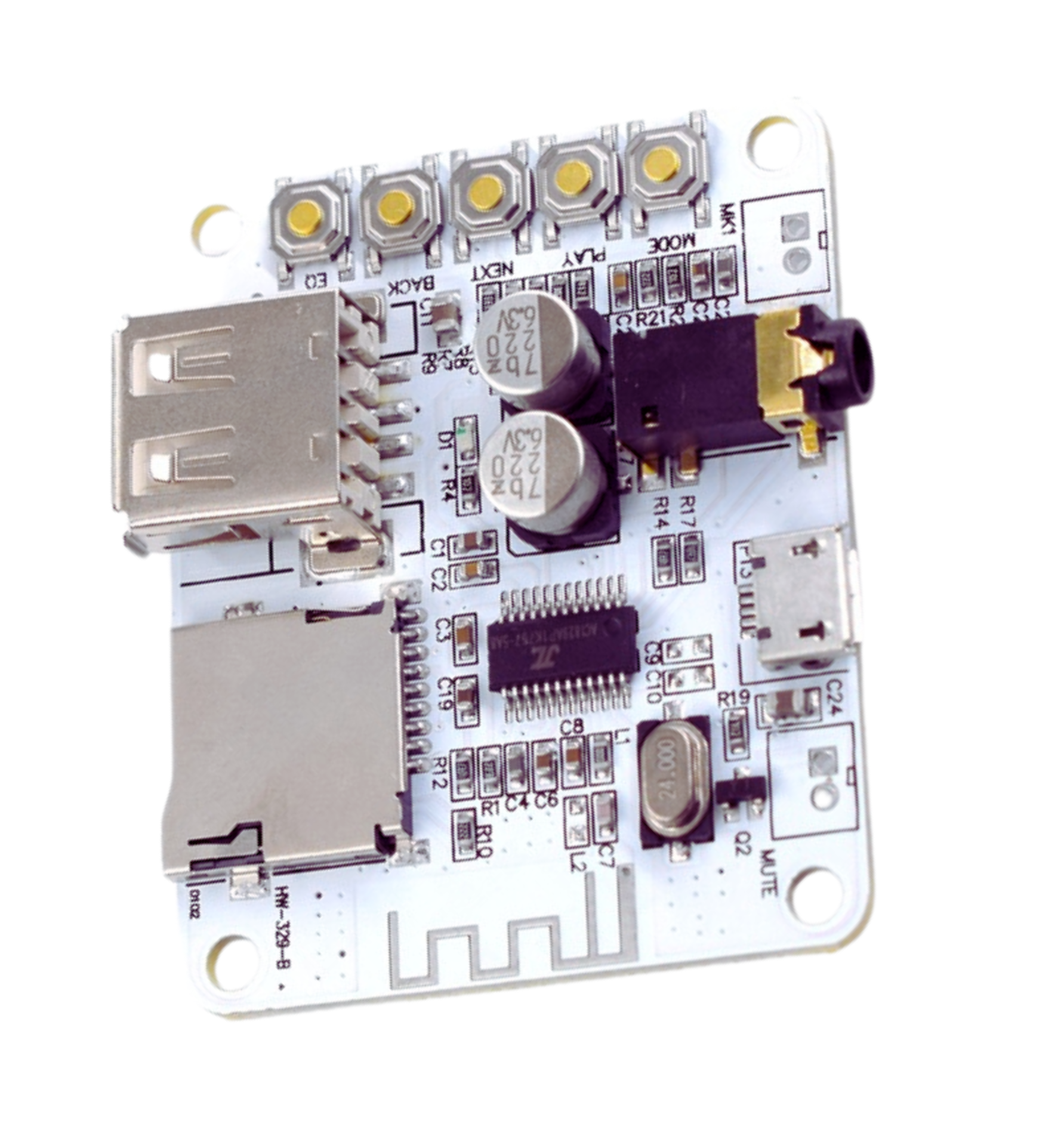 HW-329B Bluetooth MP3 Modülü, çeşitli ses dosyalarını oynatabilen ve Bluetooth bağlantısı üzerinden kablosuz ses aktarımı sağlayan kompakt bir modüldür. Aşağıda teknik özellikleri detaylı olarak listelenmiştir: